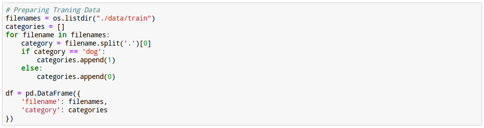 ์ด๋ฅผ ๊ตฌ๋ถํ์ฌ ๊ฐ์ ํด๋น๋๋ ํ์ผ๋ช ๊ณผ ์ ๋ต('๊ฐ', 1)์, ๊ทธ๋ฆฌ๊ณ ๊ณ ์์ด์ ํด๋น๋๋ ํ์ผ๋ช ๊ณผ ์ ๋ต('๊ณ ์์ด', 0)์