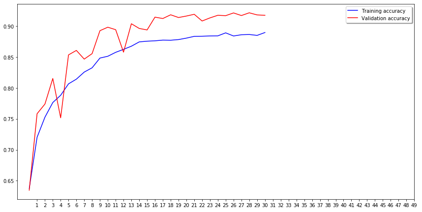 ํ๋์ ๊ทธ๋ํ๋ ํ์ตํ ๋์ ๊ทธ๋ํ๊ณ , ๋นจ๊ฐ์์ validation ๊ทธ๋ํ ์ ๋๋ค.